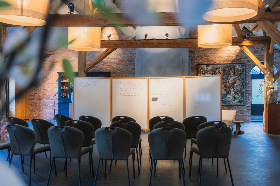 Met verplaatsbare whiteboards en praktische toolkits richt je elke ruimte in op wat er nodig is. Van overleg tot workshop. We denken mee over de opstelling en het gebruik, zodat de ruimte past bij het doel van je bijeenkomst.