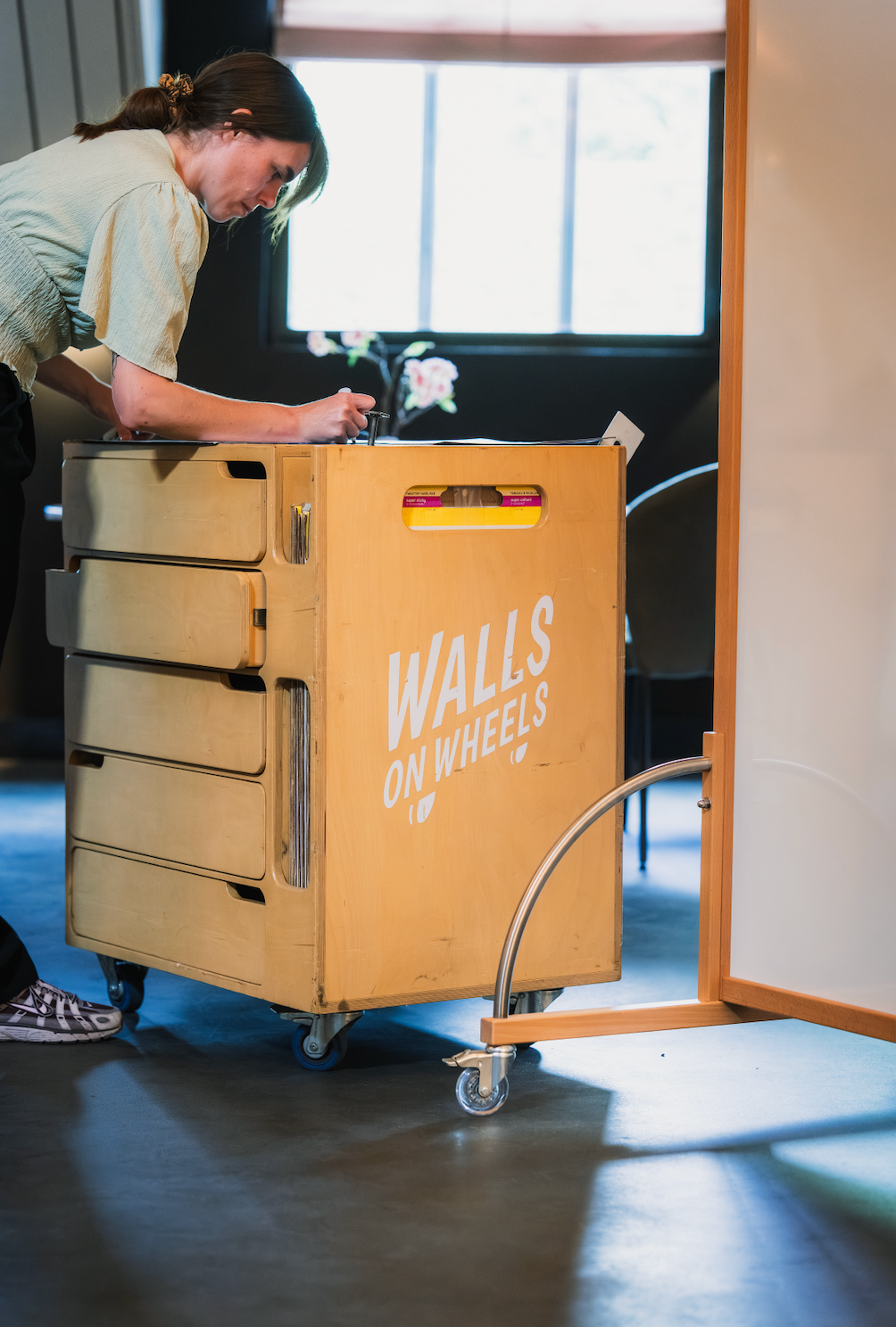 Het team van Walls on Wheels heeft jarenlange ervaring met het inrichten en faciliteren van workshops en events. We weten wat een ruimte nodig heeft om samenwerking te ondersteunen en hoe een opstelling het verloop en tempo van een sessie beïnvloedt.